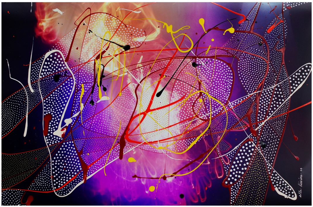 March 13, 2014 1071 × 710 Creatures of Mother Ocean 12″x18″, pen, enamel, acrylic on c-print, 2014 (18″x24″ on frame) US$240 + shipping