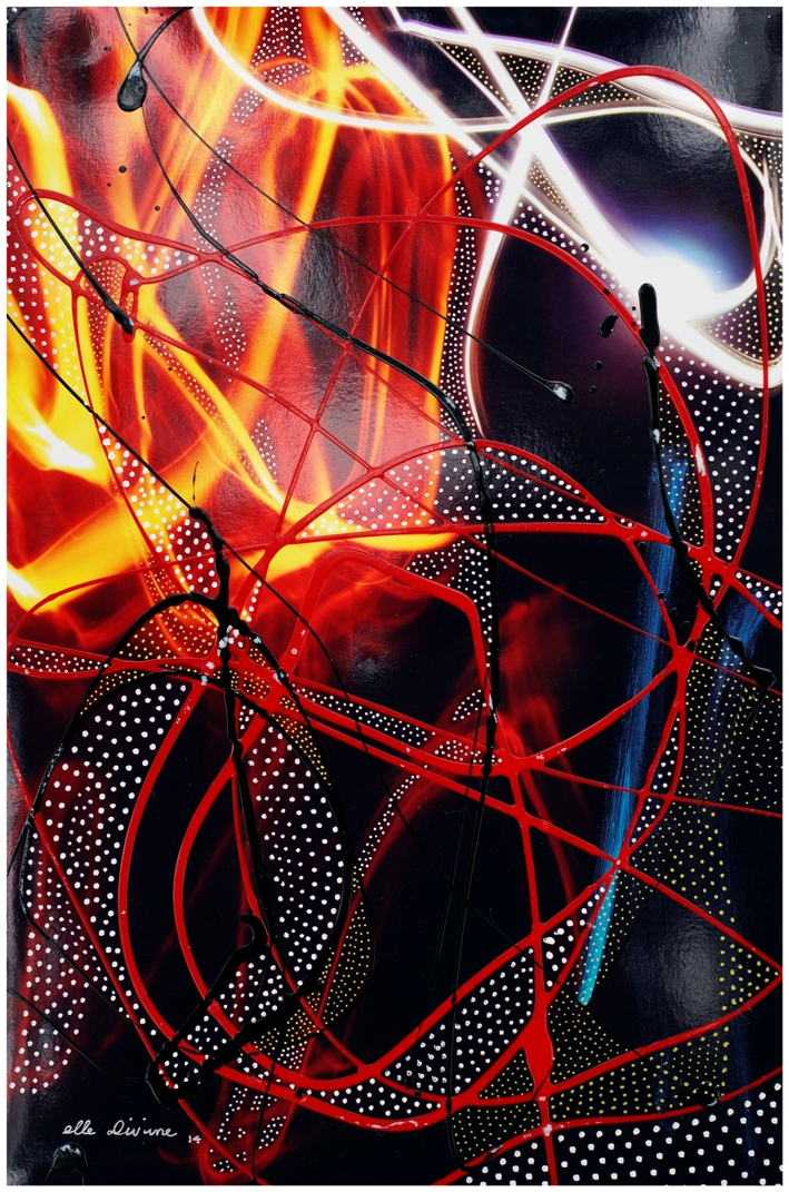 March 13, 2014 709 × 1071 Free Falling from the Golden Arc 8″x12″, pen, enamel, acrylic on c-print, 2014 (14″x18″ on frame) US$170 + shipping