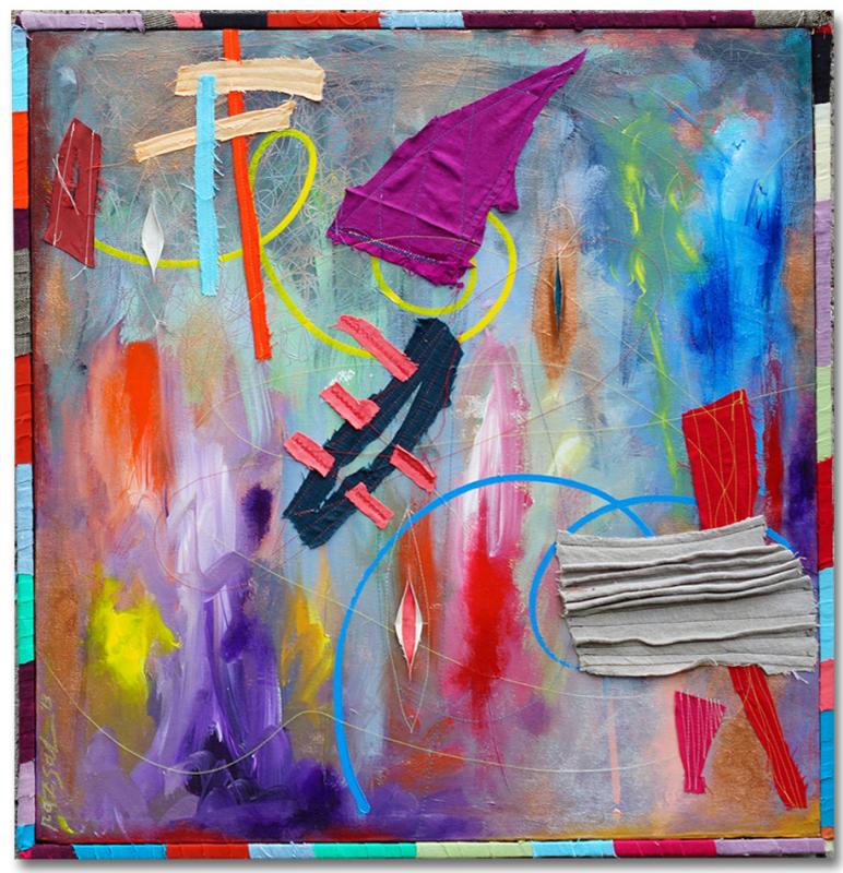 The surprise for me in this exhibition is the revelation of Elle Divine as artist. One of the loveliest women I know, she takes my breath away with “Map of HerStory,” a study in red broad strokes and drippings that I would have described as a marriage of Pollock and Rothko—but with none of their masculine rages. Her painting pulsates with feminine power, her reds carefully textured out with painstakingly placed acrylic dots that give shape to the swallowing hue. All in all, her paintings come off as almost portraiture in nature—but not of the human face, but of the human aura.