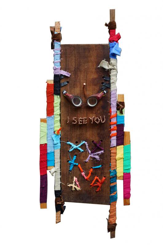 Rianne’s brother, Razceljan Salvarita, on the other hand, has gone away from the mandalas and circles and fiery vulvas of his Bali phase—he had been a fixture in the Indonesian art scene for some time—to experiment in a kind of found art that isn’t. Because there’s still a painterly quality to his assemblage of wood and linen cloth and rope and what-not. Take a look at his “Tapestry in Symphony (in A Minor).” The pieces of repurposed wood he has gathered are wrapped in cloth and placed in a haphazard manner, approximating picket fences, on top of a painted board. The result is both rough and elegant—and together with his other works in the collection, they surprisingly resemble the spirit of abstract expressionism, like a Kandinsky with the flavor of eco-art.